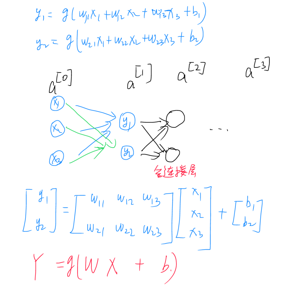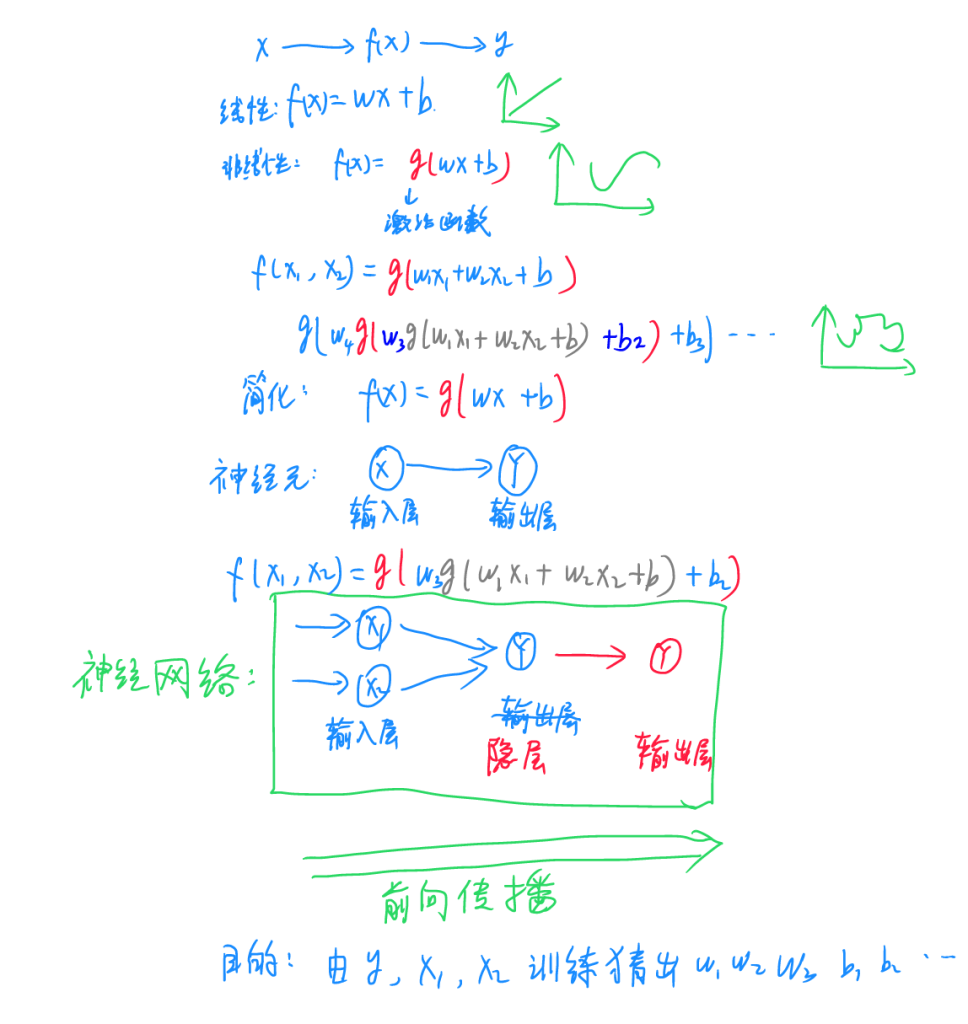 所有的神经网络无非都是一个函数操作,在这个操作中,我们输入一个或多个X,可以是文本,图像,声音,视频等等信息,希望得到对应的因变量Y,即X经过一个变换f(x)后得到y,最简单的神经网络是线性的,此处f(x)=wx+b,式中w为参数,b为偏置。由于线性的操作只能处理线性可分的数据,无法处理复杂的曲线等数据,解决方案是在线性部分外套一个激活函数。常用的激活函数都非常简单,如sigmoid函数等,但是非常好用。通过激活函数的层层嵌套,理论上可以构造任意的曲线,实现了复杂的应用需求。输入的数据不一定只有一个,可以有多个,为了简化书写,记为: