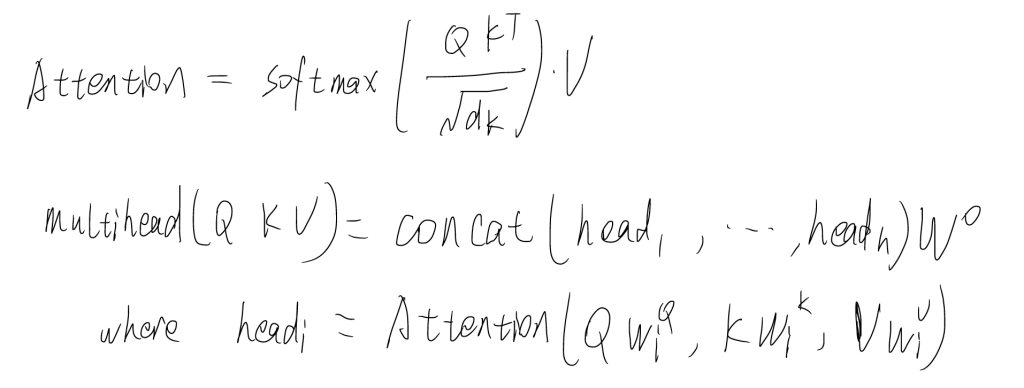 依次处理所有词向量后就能够得到所有的含有语义信息的新向量,这就是self-Attention注意力机制的原理。上述步骤中只用到了一组QKV矩阵,称为单头注意力,若用多组矩阵分别操作,则为多头注意力机制(multi-head Attention),类似从不同的角度看问题,能够更加全面地反应信息。