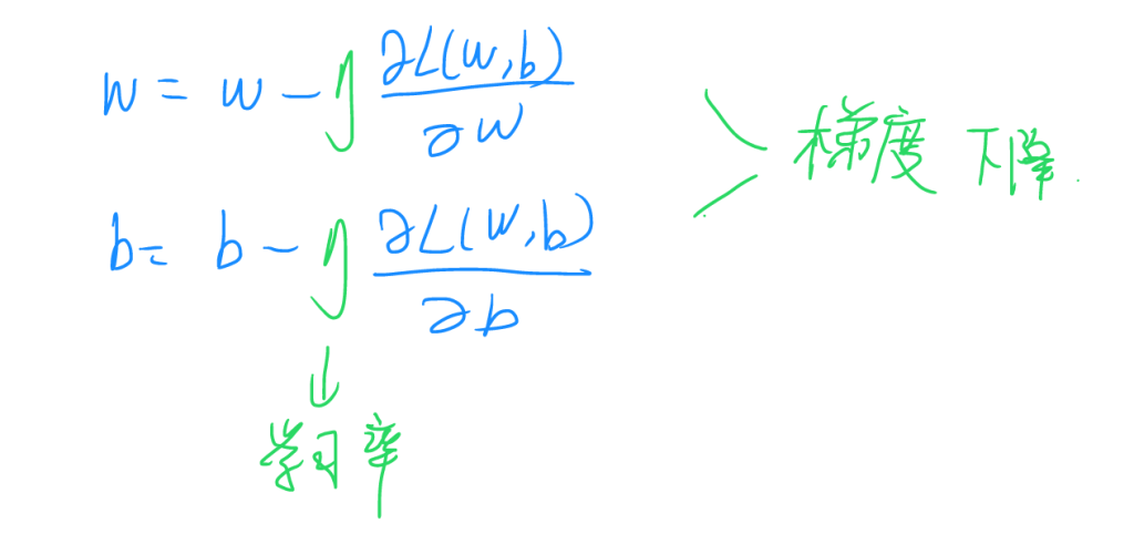 为了方便计算机计算,此处将求解式写成迭代形式,参数η为学习率,使得整个式子往梯度下降的方向调整,能够加速收敛,即可大大加快训练过程。